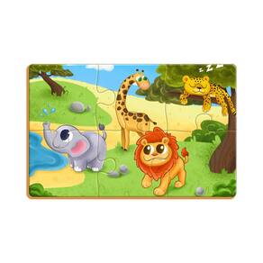 São 4 quebra-cabeças, um com 3 peças, um com 6 peças, um com 9 peças e outro com 12 peças, para a criançada se divertir ao montar, os mais fofinhos animais, de uma fauna super diversificada e cheia de bichinhos incríveis!