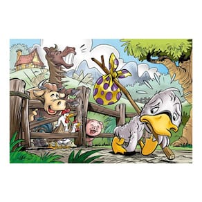 Com 3 quebra-cabeças que contam a história do Patinho Feio, a criança monta os quebra-cabeças e pode ler a história no verso da embalagem.