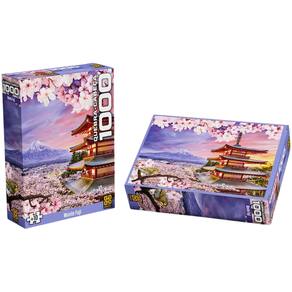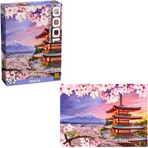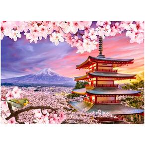Descrição do produto : " Um cenário sereno e deslumbrante com o tradicional pagode japonês emoldurado por flores de cerejeira e o imponente Monte Fuji ao fundo. Um convite à paz, à cultura e à beleza natural! A partir de 10 anos Quantidade de peças: 1008 Dimensões aproximadas: 50 x 70 cm : "