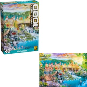 Descrição do produto : " Um lugar mágico, onde pontes de madeira, castelos encantados e cachoeiras cristalinas criam um cenário de conto de fadas. Ideal para quem sonha com um refúgio de pura fantasia e beleza. A partir de 10 anos Quantidade de peças: 1008 Dimensões aproximadas: 50 x 70 cm : "