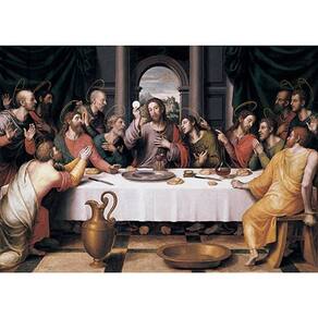 Quebra cabeça c/1000 peças -Santa ceia - A Ultima Ceia de Juan de Juanes, ilustra a passagem do Novo Testamento em que Jesus institui a Eucaristia. No Centro, Cristo rodeado por seus discípulos, cujos nomes aparecem escritos nas auréolas. Dando as costa ao espectador, encontra-se Judas. Esta obra renascentista faz parte do acervo do Museo del Prado, em Madrid. A ultima ceia de Leonardo da Vinci, quadro em que Juan se inspirou tanto para a composição quanto para a doçura das cores e dos rostos. Fabricante Grow - Dimensão 69,8 x 49,9 cm -Idade : a partir de 10 anos - Certificado do Inmetro CE-BRI/CEPEX-N 01024-25 NBR NM 300/2004 Segurança de Brinquedos Código da Grow 01393. Ean: 7908010113938