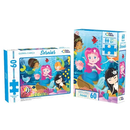 O quebra cabeça cartonado Sereias, da Pais e Filhos, é fabricado em material de alta qualidade para garantir durabilidade e resistência durante o dia a dia. Muito divertido, conta com 60 peças para montar e dar vida à uma fofinha e linda imagem de sereias, é super delicado.