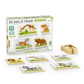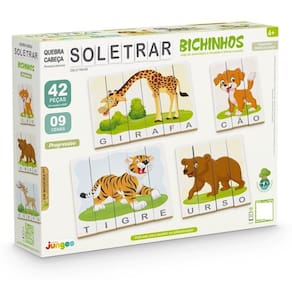 Jogo Quebra-Cabeça Soletrar da Junges com 42 peças em madeira de reflorestamento MDF , que formam 9 cenas progressivas entre três a seis letras palavra/figura . Impressão direto na madeira com acabamento de alta qualidade, durabilidade e resistência. Com o jogo quebra-cabeça de soletrar as brincadeiras se tornam educativas e divertidas Ideal para aprimorar o raciocínio lógico, concentração e atenção. Jogo para associação e iniciação à leitura e escrita, indicado para auxiliar na alfabetização