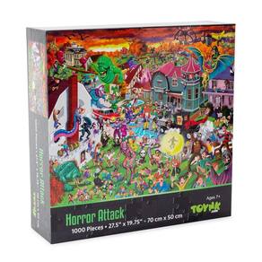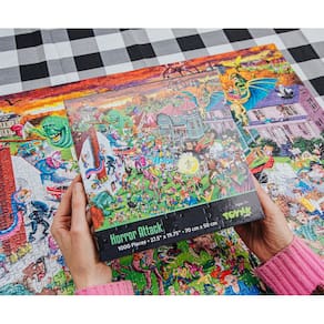 Mundos estranhos colidem com este exclusivo quebra-cabeça de 1000 peças de Horror Attack. Desafie-se com este quebra-cabeça que coloca uma pequena cidade contra alguns dos maiores nomes do horror. Mergulhe no mundo arrepiante do terror com nosso quebra-cabeça meticulosamente trabalhado, com imagens de alta resolução que certamente emocionarão qualquer aficionado por terror. Aqueles com afinidade com o macabro apreciarão que a colagem preste homenagem a alguns dos personagens mais emblemáticos do gênero. Cada detalhe é capturado com clareza deslumbrante, garantindo que cada peça revele um espetáculo assustadoramente divertido. Tente identificar todas as referências de terror feitas neste quebra-cabeça enquanto você monta a cena caótica. As imagens vívidas evocam os monstros travessos de Gremlins e os palhaços arrepiantes de Terrifier e Stephen King's IT. Quebra-cabeça sobre acontecimentos sobrenaturais de Ghostbusters, The Nun e The Evil Dead com cada peça que você conectar. Reúna sua coragem enquanto monta este quebra-cabeça colecionável de 1.000 peças. - Ultimate TERROR UNLEASHED: Monte uma equipe heterogênea de monstros e monstros com este quebra-cabeça exclusivo de 1.000 peças. Você revelará uma reunião de ícones de filmes de terror enquanto resolve este desafio intrigante. - Uma colagem de ícones de horror: de alienígenas e palhaços a Freddy e Jason, este quebra-cabeça retrata uma cidade invadida por ameaças cósmicas, bicho-papão e assassinos. Mantenha sua inteligência sobre você enquanto monta esta imagem detalhada com grandes nomes dignos de gritos. - Qualidade matadora para fãs de horror: o design resistente apresenta peças de quebra-cabeça de fácil ajuste que se encaixam perfeitamente para montagem rápida. Feito de materiais de tabuleiro de quebra-cabeça 100% reciclados que são meticulosamente trabalhados para garantir alta qualidade. - Acabamento e moldura: cada peça se encaixa para criar uma colagem colorida de criaturas assassinas, monstros, alienígenas e muito mais. O quebra-cabeça completo mede aproximadamente 71 x 50 cm, criando uma exibição emocionante. - Atividade de quebra-cabeça colecionável: Divirta-se com a diversão monstruosa que este quebra-cabeça exclusivo de 1.000 peças oferece. Um bom momento o aguarda com este desafio de quebra-cabeça, esteja você conectando as peças sozinho ou com amigos.
