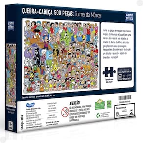 Conteúdo da Embalagem: 01 quebra cabeça com 500 peças Turma da Mônica