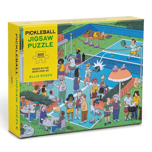 - Quebra-cabeça de 500 peças baseado no livro "Dink! Pickleball Fatos, Ficções e Desenhos Animados" por Ellis Rosen