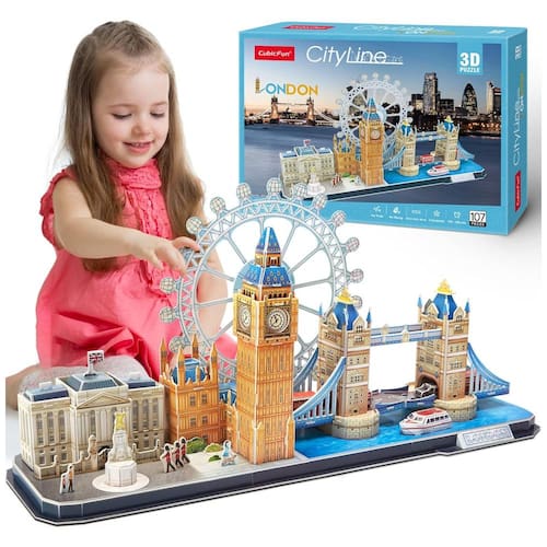 4 em 1 City Model Kit Cubicfun 3D puzzle of London model kit é um projeto para construir marcos históricos de Londres, incluindo o Palácio de Buckingham, Big Ben, London Eye, Tower Bridge. Presente ideal para crianças Projetado para ser agradável e desafiador, este kit de modelo de quebra cabeças 3D é um presente de aniversário ou presente de Natal ideal para crianças. Construir um artesanato tridimensional ajuda a desenvolver a criatividade, a concentração e a confiança de uma criança para concluir um projeto complexo. Recomendado para maiores de 8 anos. Atividade em Família Engraçada Comparado a terminar sozinho, é melhor compartilhar um momento divertido em família com seu filho ou neto para trabalhar e completá lo juntos. Seguir o manual de instruções para montar as peças numeradas facilita muito. Nenhuma ferramenta e cola necessária. Decoração de quarto perfeita Uma vez finalizado, os kits de modelos 3D serão exibidos com orgulho em sua casa ou escritório e mostrarão as arquiteturas clássicas de Londres. Tamanho finalizado Comprimento Largura Altura. Serviço pós venda sem preocupações Espero que nossos produtos lhe tragam mais felicidade. Se houver algum problema, conte nos e faremos uma solução satisfatória especial para você Marca: Não Informado
