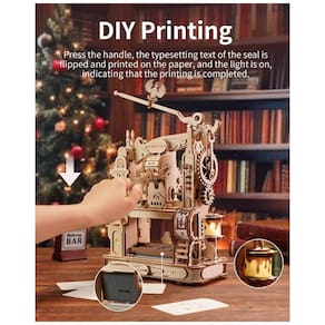 Este é um presente incrível que oferece uma experiência única de impressão de tipos móveis, ao mesmo tempo que ajuda a desenvolver a coordenação olho mão e habilidades de pensamento espacial. É recomendável remover e guardar o cartucho de tinta com a tampa se não for utilizado por um longo período para evitar que ele seque. A parte da engrenagem mecânica precisa ser lubrificada com um bloco de cera para torná-la mais conveniente de usar.