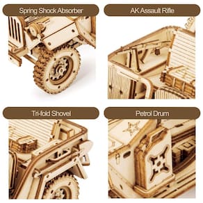 Este modelo de veículo em escala é inspirado na evolução dos veículos rodoviários até o século XIX. Ele é um quebra cabeça mecânico 3D exclusivo, feito de madeira compensada cortada a laser, sem tóxicos e ecologicamente correto. Todas as peças são pré-cortadas, sem necessidade de cola, e os mecanismos de travamento são muito engenhosos. As instruções detalhadas estão em inglês e montar este modelo requer atenção e paciência. Ao finalizar o modelo, você sentirá orgulho de ter montado toda essa configuração de brinquedo IQ com suas próprias mãos. Este é um presente criativo e fascinante para quem é construtor de modelos ou amante de quebra cabeças, sendo o melhor presente de Natal para seu namorado, namorada, marido ou esposa. Além disso, o quebra cabeça de madeira 3D tem designs decorativos que ficam cativantes no produto acabado, sendo uma decoração perfeita e uma exibição elegante para coleções.