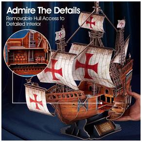 O Navio Santa Maria é uma peça essencial para qualquer colecionador de réplicas precisas de navios históricos. Este navio é reconhecido por sua importância histórica, sendo o que Cristóvão Colombo utilizou para descobrir a América em 1492. O kit é composto por peças de alta qualidade e detalhes fotogravados que conferem um toque distinto à decoração do ambiente. A montagem deste modelo é simples, mesmo para iniciantes, devido à qualidade dos materiais e às instruções claras e detalhadas fornecidas. Feito de placa de espuma de papel verde, o kit é mais seguro que metal e madeira, oferecendo um aspecto mais realista e sendo mais leve que o plástico. O tamanho final da construção é de 57 cm x 20 cm x 50 cm, tornando-o ideal para entusiastas a partir de 16 anos.
