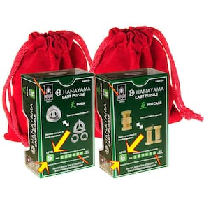 Procurando aquele desafio mental extremo do cérebro. Teste suas habilidades para resolver esses quebra-cabeças de desentrelaçamento de metais de nível 6 e 5 da Hanayama Puzzles of Japan (e distribuídos pela BePuzzled/University Games nos Estados Unidos). NUTCASE tem um truque real que é preciso aprender. O objetivo de ambos os quebra-cabeças é separar as peças. Igualmente desafiadora é a remontagem. Resolver verdadeiramente todos os quebra-cabeças de Hanayama significa que você realmente sabe quais movimentos desmontam o quebra-cabeça e quais movimentos permitem que ele seja remontado. Os quebra-cabeças Hanayama são excelentes quebra-cabeças para crianças de 13 a 105 anos. NENHUMA força é necessária para resolver esses trapaceiros. Os quebra-cabeças são pequenos, de bolso, medindo aproximadamente 1,5 a 2 polegadas de comprimento. Lembrete. NENHUMA FORÇA é necessária para resolver o quebra-cabeça. Apenas uma série de movimentos inteligentes. NUTCASE é uma dificuldade de nível 6. EQUA é classificado como uma dificuldade de nível 5. (a escala subjetiva do fabricante varia de 1 a 6, onde 1 é mais fácil e 6 mais difícil). As pessoas podem experimentar os quebra-cabeças de forma diferente. Bônus: 2 bolsas de armazenamento Red Velveteen Drawstring. Meça aproximadamente 3 x 4 polegadas deitado. Itens empacotados. Os quebra-cabeças oficiais de Hanayama, distribuídos pela University Games (também conhecida como BePuzzled), são embalados em uma caixa verde escura com frente transparente.