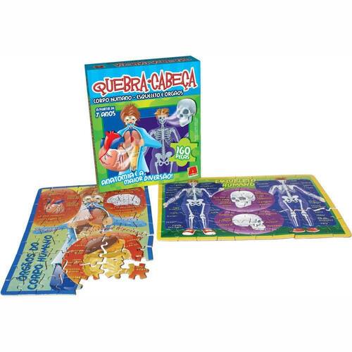 Quebra-cabeças - Corpo Humano - 80 peças cada - Algazarra Com esses quebra-cabeças a criança aprenderá sobre anatomia esqueletos e órgãos internos . Mais que um passatempo divertido, o quebra-cabeça desenvolve o raciocínio lógico e a concentração. Cada quebra-cabeça mede: C x A 23 x 32 cm. Participantes: vários jogadores. Ref.: 303435. Material: papelão. Conteúdo da embalagem: 2 quebra-cabeças com 80 peças cada total 160 peças . Medidas de cada mapa: C x A 23 x 32 cm. Medidas da embalagem: C x A x L 22 x 30 x 6 cm. Certificação: CE-BRI/BRICS 00032-14 NM300/2002. Idade: a partir de 7 anos. Peso aproximado do produto: 0,270 gramas. Garantia: 3 meses somente para defeitos de fabricação . Observe atentamente a idade recomendada para o brinquedo. Pode conter partes pequenas que podem ser engolidas e perigosas. A Algazarra Brinquedos conquistou o mercado e ampliou a linha de produtos, se associando a diversas marcas de personagens infantis. Desenvolvem brinquedos que educam. Divertem e geram novas prospecções comerciais para nossos clientes. Ean: 7897447203148