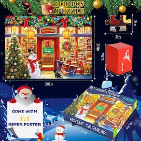 Quebra-cabeça de Natal 2024 calendário do advento para adultos e crianças, calendário de contagem regressiva de 1008 peças, jogo de Natal para a família, presentes de Natal, decoração de parede para casa - ?Quebra-cabeças de Natal 2024?: Os quebra-cabeças de Natal contêm 24 caixas numeradas com 42 peças em cada caixa. com um total de 1008 peças de quebra-cabeças. Seu objetivo é terminar uma seção do quebra-cabeça todos os dias entre 1º de dezembro e 24 de dezembro. Estes quebra-cabeças para adultos 1008 peças também vêm com pôster de quebra-cabeça 1:1 para referência. Tamanho final do quebra-cabeça: 27,56 x 19,68 polegadas / 70 x 50 cm. - ?Material premium e qualidade durável?: o calendário do advento do quebra-cabeça de Natal é feito de papelão grosso reciclável de alta qualidade com acabamento premium, resistente a dobras e desbotamento. O corte de precisão garante que as peças se interligem bem umas com as outras e o mínimo de poeira. Em termos de impressão, emprega tecnologia de impressão de alta definição, tornando todos os detalhes de cada peça do quebra-cabeça claros e vibrantes. - ?Quebra-cabeça de contagem regressiva de Natal de 24 dias?A contagem regressiva de Natal é um ritual com surpresas e antecipação, que anima a atmosfera de todo o Natal. Os números de 1 a 24 são impressos na parte de trás de cada peça do quebra-cabeça, então, depois de concluir este quebra-cabeça do calendário do advento, você pode classificá-lo e armazená-lo e compartilhá-lo com outras pessoas ou continuar usando no próximo ano. - ?Melhor opção de presente de Natal e decoração de Natal?: O calendário do advento de quebra-cabeças de Natal com tema de Natal é um presente perfeito para a família, crianças, amigos, adultos para o Natal, Ação de Graças, aniversário. Depois de terminar, você pode emoldurar e pendurar na parede para decorar sua casa! É um calendário de advento de Natal perfeito para os amantes de quebra-cabeças para tornar o tempo de espera alegre e emocionante! - ?Interação familiar e experiência memorável?: Estes quebra-cabeças para crianças de 8 a 10 anos geralmente são relaxantes e um ótimo projeto para indivíduos e membros da família trabalharem juntos para promover a interação entre pais e filhos. Você também pode completar este quebra-cabeça de Natal com a família e amigos, tratando-o como um minijogo para festas de Natal ou reuniões de família. Este quebra-cabeça de contagem regressiva cria memórias de Natal inesquecíveis com seus entes queridos