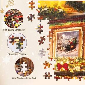 - Quebra-cabeça do Calendário do Advento 2024: O quebra-cabeça de 1008 peças é embalado em 24 caixas, com 42 peças em cada caixa. Você pode completar as peças do quebra-cabeça nas caixas numeradas correspondentes todos os dias entre 1º e 24 de dezembro e finalmente completá-las na véspera de Natal para criar uma obra-prima. O tamanho final é: 70* 50 cm/27,56* 19,69 polegadas e vem com um pôster de quebra-cabeça 1:1 para referência