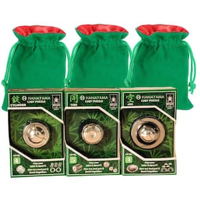 O pacote de 3 dos quebra-cabeças Hanayama mais populares do Japão inclui: TUBE (Nível 5), CILINDRO (Nível 4) e UFO (Nível 4). Prepare seu cérebro e veja se você consegue descobrir como resolver esses três quebra-cabeças muito desonestos, os “Triple Tricksters”. Ótimos para membros da família com uma mente “ao estilo de engenharia”. O objetivo desses quebra-cabeças é separar as peças. Igualmente desafiadora é a remontagem. Resolver verdadeiramente todos os quebra-cabeças de Hanayama significa que você realmente sabe quais movimentos desmontam o quebra-cabeça e quais movimentos permitem que ele seja remontado. Os quebra-cabeças Hanayama são excelentes quebra-cabeças para crianças de 12 a 105 anos. NENHUMA força é necessária para resolver esses trapaceiros. Os quebra-cabeças são pequenos, de bolso, medindo aproximadamente 1 a 1,5 polegadas de comprimento e pesando aproximadamente 3 a 4 onças cada. Embalado com 3 bolsas de cordão revestidas de veludo verde/cetim vermelho da Deluxe Games and Puzzles. As bolsas medem aproximadamente 4,5 x 3,5 polegadas na horizontal.