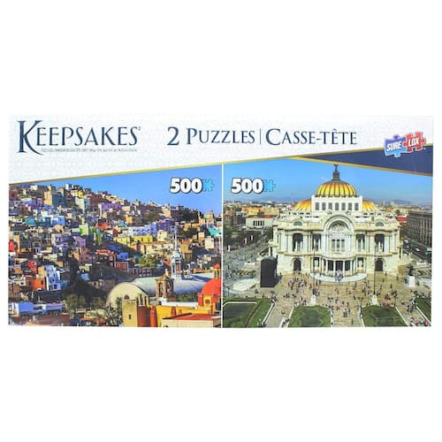 Teste suas habilidades com este conjunto de dois quebra-cabeças coloridos de 500 peças. Um desafio divertido que cria peças de exibição incríveis quando concluído. Os quebra-cabeças são feitos com a tecnologia patenteada Sure-Lox, garantindo peças de quebra-cabeça cortadas com precisão que sempre se encaixam perfeitamente. As peças do quebra-cabeça são presas em uma sacola e embaladas em uma caixa colorida com imagens do quebra-cabeça para resolver. Os quebra-cabeças são uma atividade divertida para fazer sozinho ou em grupo e são um ótimo presente para todas as idades em aniversários e feriados!