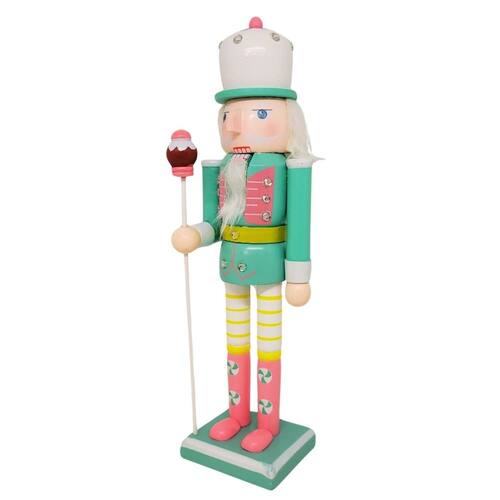 01 Unidade Boneco Quebra-Nozes em Madeira Decorado - Modelo Candy Verde, rosa e lilás 30cm