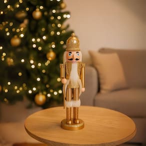 Adicione tradição e elegância à sua decoração natalina com o Quebra-Nozes Decorativo Dourado Luxo com Bastão Estrela, uma peça clássica que traz charme e sofisticação para qualquer ambiente. Com 28cm de altura, este enfeite é perfeito para complementar aparadores, mesas, prateleiras, guirlandas ou a base da árvore de Natal.