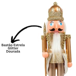 Quebra-Nozes Decorativo Natalino Dourado Luxo com Bastão Estrela – 28cm