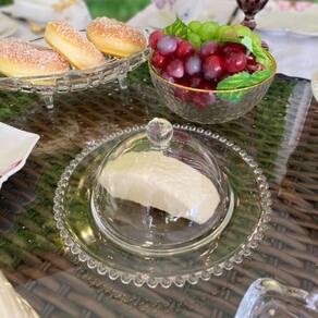 A Queijeira Pearl da WOLFF possui lapidação em bolinhas na borda, inspirada na beleza e no brilho único das pérolas. É perfeita para armazenar queijos e assim preservá-los frescos por mais tempo, oferecendo a mesa charme e sofisticação.