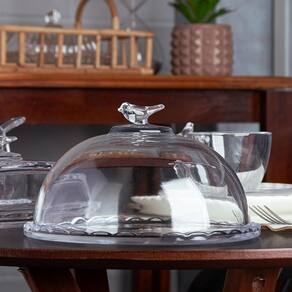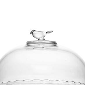Esta peça elegante e imponente é feita em cristal de alta qualidade, apresentando uma base ampla e clássica, e uma cúpula que protege o alimento com charme. O grande destaque é o detalhe requintado de um pássaro em relevo na tampa, que confere um toque de luxo e personalidade à mesa. Ideal para queijos, bolos ou doces, esta queijeira é a escolha perfeita para quem valoriza a união entre design clássico e a qualidade atemporal da Wolff.
