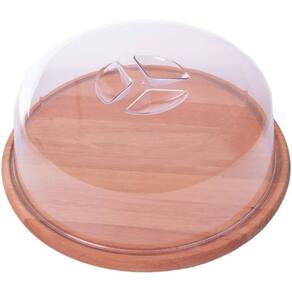 Queijeira de Madeira Redonda Porta Bolo Tampa Acrílico 22cm Essence Domama Eucalipto.