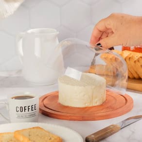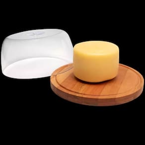 A queijeira de madeira essence redonda com tampa de acrílico Domama é um utensílio de cozinha para armazenar e servir queijos e bolos. A queijeira é feita de madeira eucalipto trazendo uma beleza rústica. O acabamento é feito de óleo mineral atóxico especial para proteger a tábua de corte previnindo o ressecamento e a rachadura. A tampa é fabricada em acrílico transparente, permitindo a visualização do conteúdo e protegendo os queijos e bolos, evitando que eles fiquem expostos ao ar e se ressequem, ajudando a manter a textura, o sabor e o aroma por mais tempo.