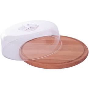 Garantia: 90 dias / Peso: 0,432kg / Cor predominanate: natrural / Referênica: 7898952412001. Dimensões da base de madeira: 22cm (D) x 2cm (A). Dimensões da tampa de acrílico: 19cm (D) x 8cm (A). Cuidados: - Lavar com água e sabão neutro, seguido de pano seco; - Não utilizar produtos químicos ou abrasivos na limpeza; - Não secar ao sol. Material: madeira eucalipto e acrílico.