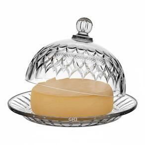 Especificação: Modelo: Queijeira com tampa Marca: GH3 ou Mek Material: Vidro Tamanho: 20 x 13,5 cm Peso total: 1kg.