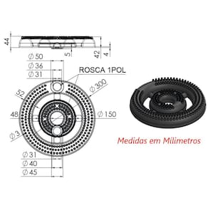 Queimador Alta Pressão Coroa de Fogão Furado Duplo 30cm     Ideal para cozinhas industriais, este queimador oferece chama intensa e estável, garantindo alto desempenho. Fabricado em material resistente, com coroa furada para combustão eficiente. Pode ser utilizado em conexões de gás de rosca 1”, perfeito para recipientes grandes. Essencial para quem busca eficiência e qualidade na cozinha. Esse tipo de queimador é projetado para fornecer uma chama intensa e estável, ideal para cozinhas industriais onde é necessário cozinhar grandes quantidades de alimentos rapidamente.   Características Técnicas:Diâmetro do Bocal: 3,1cm.Material: Ferro Fundido.Diâmetro Total: 30cm.Modelo: Duplo.Peso: 4,743Kg.Altura: 4,4cm.Rosca: 1”.   Itens Inclusos:01 Queimador Alta Pressão Coroa Fogão Industrial Furado Duplo Rosca 1” 30cm.   Código: 94182LBProdutoLojaPlast.