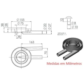 Características Técnicas Queimador:Comprimento do Cano: 16,3cm.Diâmetro do Bocal: 2cm.Material: Ferro Fundido.Diâmetro Total: 15,5cm.Peso: 1,996Kg.Altura: 3,8cm.