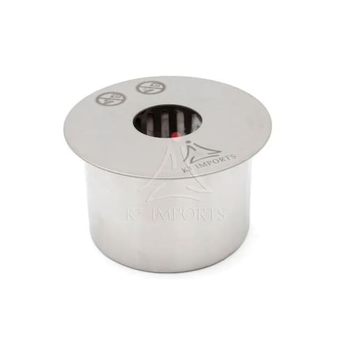 O Queimador a Álcool Redondo 1L K3 Imports é fabricado com chapa de aço inoxidável de acabamento escovado, contendo uma câmara de isolamento total, revestida com manta cerâmica. Ele possui abas laterais em todos os lados para um acabamento por sobreposição, e vem com uma ferramenta para extinguir a chama.