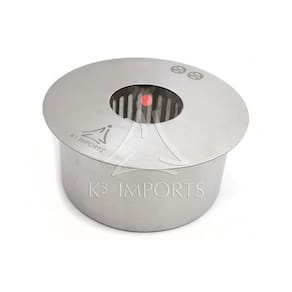 O Queimador a Álcool Redondo 2,5L K3 Imports é fabricado com chapa de aço inoxidável de acabamento escovado, contendo uma câmara de isolamento total, revestida com manta cerâmica. Ele possui abas laterais em todos os lados para um acabamento por sobreposição, e vem com uma ferramenta para extinguir a chama.