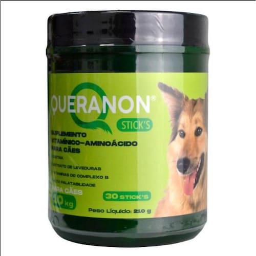 SobreRECEITAReceita SimplesNÍVEIS DE GARANTIACistina (mín): 3143 mg/kgExtrato de levedura (mín): 14,28 g/kgPatotenato de cálcio(mín): 9428 mg/kgTiamina (mín): 9000mg/kgProteína Bruta (mín): 350g/kgUmidade(max):200g/kgARMAZENAMENTOManter o produto em local seco, fresco, sem incidência de raios solares, longe do alcance de crianças e animaisREGISTRO NO MAPAProduto isento de registro no Ministério da Agricultura, Pecuária e Abastecimento.APRESENTAÇÕES E CONCENTRAÇÕES- Queranon Stick's, frascoINDICAÇÕESIndicado para a pele e a pelagem de cães que necessitem do aporte desses nutrientes.CONTRAINDICAÇÕES / PRECAUÇÕESUso proibida na alimentação de ruminantes.Administração e dosesVIA(S)OralFREQUÊNCIA DE UTILIZAÇÃO24 horasDURAÇÃO DO TRATAMENTOA critério do médico veterinário.MODO DE USAROferecer ao animal diariamente.