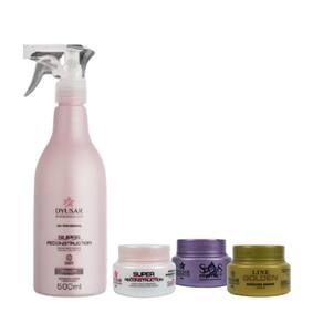 Queratina Cistina Super Reconstruction Dyusar Professional Hair Descrição: A Queratina Cistina é um restaurador capilar que proporciona revitalização intensiva da fibra capilar. Reduz a porosidade, hidrata e fortalece os cabelos, tornando-os mais resistentes e saudáveis. Ideal para cabelos frágeis, desvitalizados ou sensibilizados por processos químicos. Modo de Uso: Agite antes de usar. Após lavar os cabelos, retire o excesso de umidade com a toalha e aplique o produto por toda a extensão dos fios. Enluvar e deixar agir por aproximadamente 10 minutos. Enxaguar. Pode ser utilizado como pré-escova. Recomendações e Cuidados: Uso externo. Não utilizar sobre a pele irritada ou lesionada. Em caso de irritação, suspender o uso. Evitar contato com os olhos. Manter fora do alcance de crianças. Conservar em temperatura ambiente, longe do calor e da luz. ANVISA: 25351.274904/2018-58