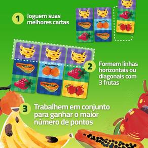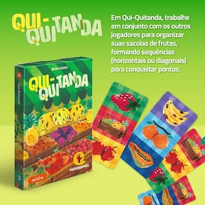 Em Qui-Quitanda, trabalhe em conjunto com os outros jogadores para organizar suas sacolas de frutas, formando sequências (horizontais ou diagonais) para conquistar pontos.