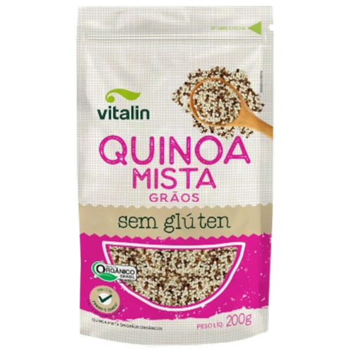 Rica em proteínas, aminoácidos essenciais e nutrientes, a Quinoa Mista em Grãos Orgânica Sem Glúten Vitalin é fonte de fibras e energia, além de não conter glúten. Depois de cozida, pode ser combinada com legumes e outros alimentos.