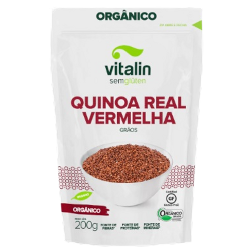 A Quinoa Real Vermelha em Grãos Orgânica Sem Glúten Vitalin, além de ser ótima fonte de carboidratos de baixo índice glicêmico, vitaminas, minerais e gordura saudável, a quinoa contém todos os aminoácidos essenciais que o organismo não produz.