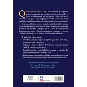 Quíron: A Ponte entre o Céu e a Terra é um convite a explorar as profundezas do seu mapa astrológico e desvendar o poder transformador que ele contém. Neste livro, você encontrará um guia completo para interpretar Quíron no mapa natal, abrangendo sua posição nos signos, casas, aspectos e trânsitos. Quíron, conhecido como o "curador ferido", simboliza nossas dores mais profundas, mas também nossas maiores oportunidades de cura e crescimento. Cada posição de Quíron no mapa revela feridas que carregamos – físicas, emocionais ou espirituais – e oferece caminhos para superá-las, transformando dor em sabedoria. O que este livro traz: • Orientações detalhadas para interpretar Quíron no mapa natal, nos signos, casas e aspectos. • Reflexões sobre os trânsitos de Quíron e como eles ativam ciclos de transformação e cura. • Exemplos práticos para ajudá-lo a conectar as histórias do mapa com os desafios e lições da vida. • Uma abordagem espiritual e iniciática, mostrando como a cura é um processo contínuo de despertar e expansão de consciência. Descubra em Quíron um aliado poderoso na jornada de despertar espiritual e de ressignificação da sua história.