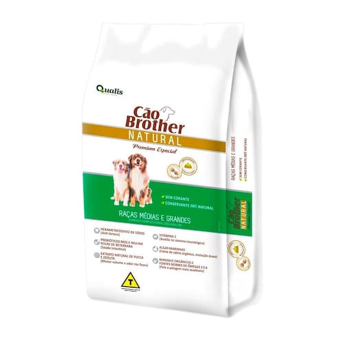 RAÇÃO CÃO BROTHER NATURAL PREMIUM ESPECIAL RAÇAS MÉDIAS E GRANDES Alimento completo para cães adultos de raças médias e grandes Sem Corante Conservante 100% Natural Hexametafosfato de Sódio (Antitá