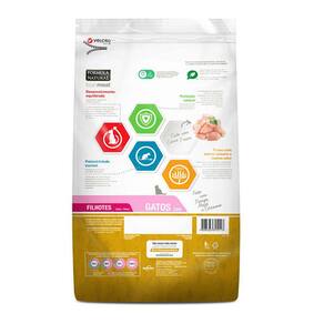 - Indicado para gatos; - Formulada especialmente para filhotinhos; - Sem adição de corantes; - Contém carne de frango, frutas como maçã e outras, cúrcuma e vegetais; - Auxilia no desenvolvimento cerebral.