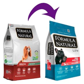 ARação Fórmula Natural Life Super Premium para Cães Adultos Raças Mini e Pequena oferece todos os cuidados a partir de um ano de idade. Com um conceito natural do produto às embalagens, a Fórmula Natural foi formulada para promover uma vida mais saudável, longeva e de bem-estar para cães e gatos. A linha oferece versões para diferentes portes e idades e proporciona entre outros benefícios, cuidados com a pele e pelagem, equilíbrio da flora intestinal e antioxidantes naturais. A embalagem I'm Green, foi desenvolvida em polietileno verde. Im green têm como matéria prima a cana- de-açúcar, fonte renovável que auxilia na captura de gases causadores do efeito estufa.