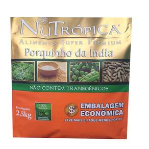 Ração Nutrópica Porquinho da india 2,5Kg Indicação do Produto: Nutrópica Porquinho da Índia é um alimento Super Premium completo, cientificamente formulado e especialmente desenvolvido para porquinhos da índia. Nutrópica Porquinho da Índia é o primeiro alimento no mercado brasileiro especialmente desenvolvido para porquinhos da índia e incorpora as recomendações nutricionais das mais recentes pesquisas. Recomendação de Consumo: Nutrópica Porquinho da Índia é um alimento completo que atende a 100% das necessidades nutricionais do seu porquinho da índia. Em média, um porquinho da índia adulto consumirá de 40 a 50 gramas 2/3 de xícara de chá de NuTrópica Porquinho da Índia por dia. A quantidade consumida poderá variar de acordo com a idade, peso, estilo de vida e com o nível de atividade do seu porquinho da índia. Os dentes dos porquinhos da índia crescem ininterruptamente ao longo da vida. A fim de estimular o correto movimento de mastigação e consequente desgaste dos dentes, recomendamos a adição de feno de boa qualidade à alimentação diária do seu porquinho da índia. Atenção: é muito importante que seu porquinho da índia tenha acesso constante a água limpa e fresca. O veterinário deve ser visitado regularmente. Veja porque NuTrópica Porquinho da Índia Muesli é o melhor alimento para o seu Porquinho da Índia: Não Contém Transgênicos - Ao contrário dos outros alimentos para roedores, NuTrópica Porquinho da Índia é formulado com ingredientes integrais de alta qualidade e não inclui em sua composição ingredientes geneticamente modificados transgênicos , como a soja e o milho. Níveis essenciais de Vitamina C - Estudos indicam que os porquinhos da índia apresentam uma necessidade especial de Vitamina C. Nutrópica Porquinho da Índia contém os níveis ideais desta vitamina, não sendo necessária a suplementação. Único e Pioneiro - NuTrópica Porquinho da Índia é o primeiro e único alimento no mercado brasileiro especialmente desenvolvido para porquinhos da índia e incorpora as recomendações nutricionais das mais recentes pesquisas. Cada partícula contém o correto equilíbrio de todos os nutrientes necessários para a perfeita saúde, bem-estar e longevidade do seu porquinho da índia. Níveis Controlados de Cálcio - Cálculos renais são problemas comuns em porquinhos da índia. Nutrópica Porquinho da Índia contém a quantidade ideal de cálcio, garantindo de forma segura o suprimento desse importante mineral. Níveis de Garantia do Produto: Umidade máx. 12,00% 120 g/kgProteína bruta mín. 15,00% 150 g/kgExtrato Etéreo mín. 4,00% 40 g/kgMatéria fibrosa máx. 23,00% 230 g/kgMatéria mineral máx. 8,00% 80 g/kgCálcio máx. 0,80% 8.000mg/kgCálcio mín. 0,40% 4.000mg/kgFósforo mín. 0,20% 2.000mg/kgSódio mín. 0,09% 900mg/kgExtrato de Yucca schidigera mín 0,025% 250mg/kgFrutoligossacarídeos mín. 0,10% 2.000mg/kgMananoligossacarídeos mín. 0,10% 1.000mg/kgVitamica C mín. 0,05% 500mg/kg