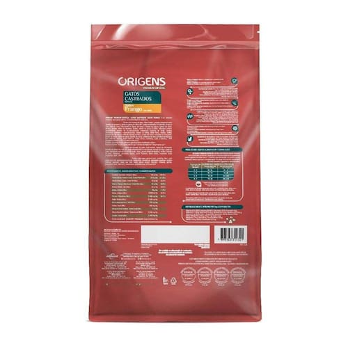 Ração Origens Gatos Castrados Frango - 10,1kg- Indicado para gatos castrados;- Calorias reduzidas;- Possui vitamina E, C e Selênio Quelato;- Mantém o equilíbrio do pH urinário.