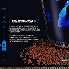 A Ração Poytara Marinhos M Black Line, é destinada a peixes de várias espécies de médio porte, com granulometria de 1.5mm permite que os peixes se alimentem aproveitando integralmente de cada partícula.