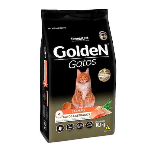 Ração Golden Gatos Adultos Castrados Salmão - 10,1kg