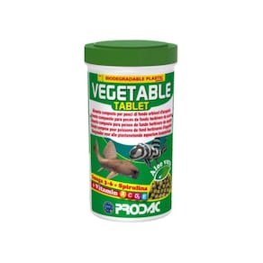 Ração prodac vegetable tablet 30g Ração para peixes de fundo herbívoros prodac vegetable tablet 30g. A ração prodac vegetable tablet é um alimento completo para peixes herbívoros de fundo, ela é composta em tabletes e é rica em vitaminas a, c, d3, e e, além de possuir ômega 3 e 6, spirulina e aloe vera. Na água, os tabletes se dissolvem lentamente e liberam pequenas partículas de alimento de forma que peixes de boca pequena, como as coridoras, também possam ingeri-las. Características: - alimento em tabletes que afundam. - embalagem com lacre transparente e plástico biodegradável. - melhor a imunidade. - destaca as cores naturais dos peixes. - promove o crescimento saudável. - não turva a água. Rica em vitaminas: - a antioxidante, desenvolvimento corporal, renovação dos tecidos epiteliais e o correto funcionamento dos processos visuais . - c antioxidante e imunoestimulante, desenvolvimento da musculatura, cicatrização das feridas e crescimento ósseo . - d3 auxilia na absorção do cálcio e do fosfato e regula as suas funções no organismo . - e trata-se de um dos mais potentes antioxidantes que nos peixes regula também a funcionalidade e a estabilidade das membranas celulares . - ômega 3 ação , energia metabólica . - ômega 6 promove a resposta imunitária correta em caso de infeção . Com spirulina: rica em proteínas 60% e em aminoácidos essenciais facilmente assimiláveis pelos peixes. A espirulina também é rica em carotenoides que destacam as cores naturais dos peixes. Com aloe vera: estimula o crescimento, cria resistência à infecções, melhora a imunidade e aumenta o apetite Atende a todas as exigências nutricionais, com alta palatabilidade. Especificações técnicas: Marca: prodac Modelo: vegetable tablet Formato: tabletes Comportamento: afunda Tamanho das pastilhas: 0,7 cm Embalagem: 30g Peixes indicados: Peixes ornamentais herbívoros de fundo de água doce. Como alimentar peixes de fundo: Oferecer prodac vegetable tablet 2 a 3 vezes ao dia. Coloque a quantidade de pastilhas que possam ser consumidas em poucos minutos. Composição: Cereais, peixe e subprodutos de peixe, soja, leveduras, crustáceos, algas spirulina 0,8%, aloe vera 0,05%. Aditivos nutricionais: Vitamina a 3a672a 46.000 iu/kg, vitamina d3 3a671 3.000 iu/kg, vitamina e 3a700 280 mg/kg, vitamina c 3a312 200 mg/kg. Constituintes íticos: Proteínas brutas 45,10%, gorduras brutas 5,02%, cinzas brutas 4,15%, fibras brutas 1,76%, umidade 8,26%, ômega 6 26,69%, ômega 3 13,00%.