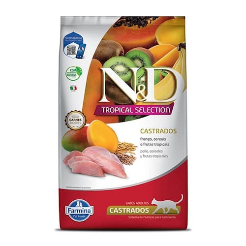 Ração seca n&d tropical selection frango, cerais e frutas tropicais para gatos adultos castrados - 7kg