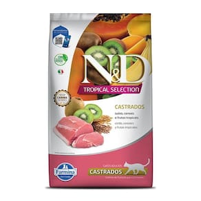 Ração seca n&d tropical selection suíno, cereais e frutas tropicais para gatos adultos castrados - 7kg