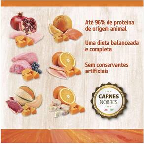 Principais Características: Ração com Baixo Índice Glicêmico e Até 96% de Proteínas de Origem Animal: Desenvolvida para manter um índice glicêmico baixo e fornecer até 96% de proteínas de origem animal, promovendo a saúde muscular e o equilíbrio nutricional. Livre de Transgênicos e Corantes Artificiais: Uma opção saudável e natural, sem adição de transgênicos e corantes artificiais, preservando a pureza e qualidade do alimento. Contém Abóbora e Romã, Sem Glúten e Cereais na Formulação: Formulada com abóbora e romã, fontes naturais de fibras, contribuindo para manter o sistema imunológico forte. Além disso, é livre de glúten e cereais, ideal para cães adultos de raças pequenas que se beneficiam de uma dieta mais próxima da natureza. Feita com Ingredientes de Alta Qualidade, Contendo Proteína de Frango: Rica em proteína de frango de alta qualidade, proporcionando uma experiência gastronômica deliciosa e contribuindo para a saúde muscular.